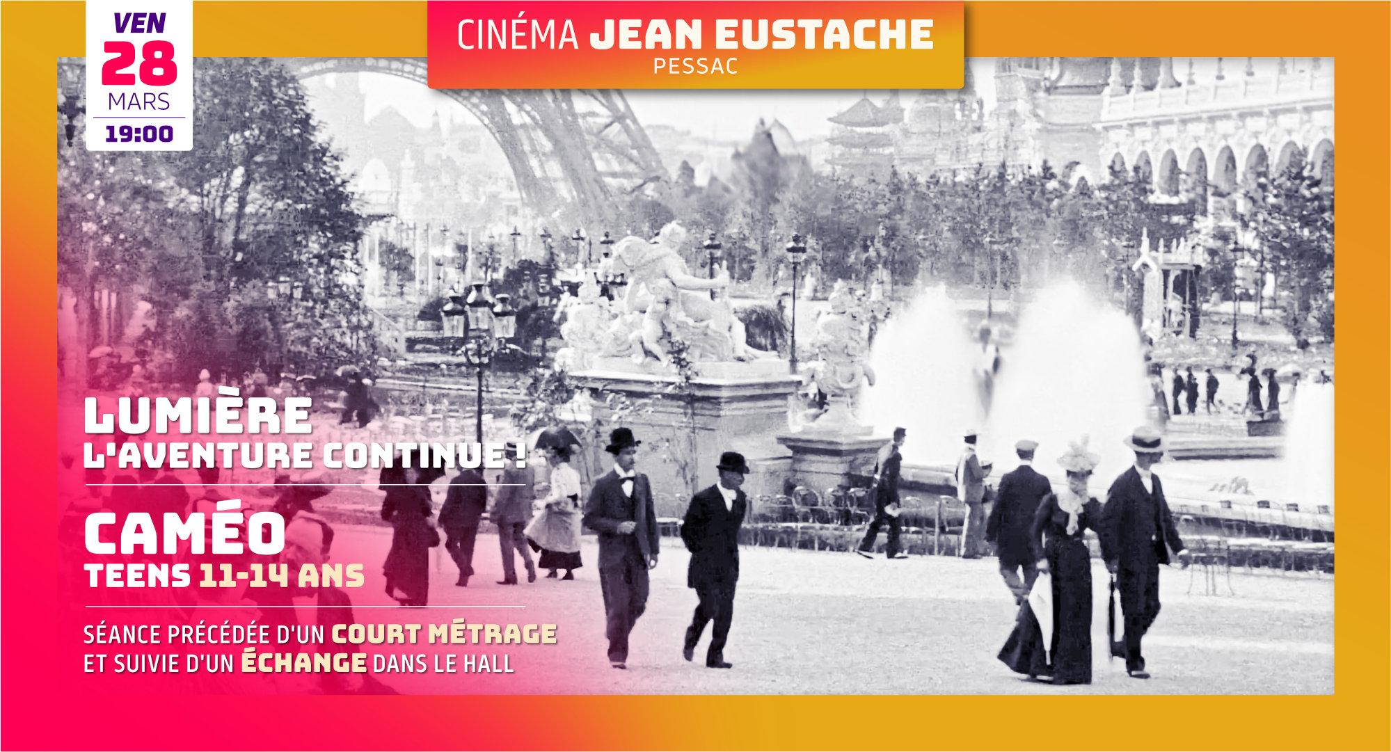 Film précédé d’un court métrage du CLAP* et d'une présentation en salle sur les prémisses du cinéma (jouets optiques, lanterne magique...). Retrouvez-nous ensuite, en fin de séance, pour un échange informel et convivial autour d'un pot dans le hall. Tarif habituel : 5,5 € pour les -18ans. Renseignements au 0555451914/service.civique33600@gmail.com CAMÉO TEENS › POUR LES […]