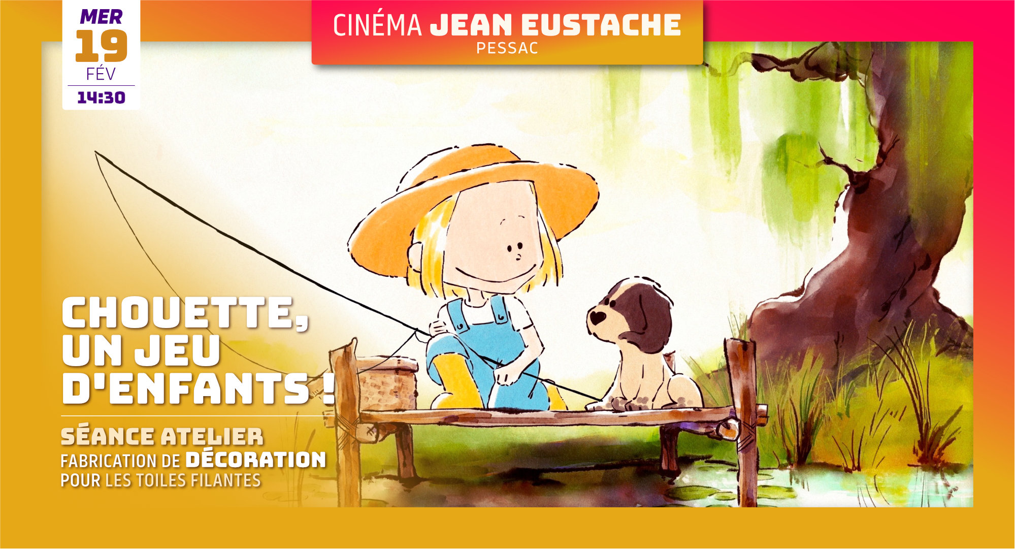 Programme de 4 courts métrages d’animation · 2024 · 38 minutes Film suivi d'un atelier de préparation de décoration pour le festival Les Toiles Filantes sur le thème: À vous de jouer ! (retrouvez toute la programmation sur lestoilesfilantes.org) Sur inscription au 05 56 46 39 38 Tarif unique : 5,50 €.