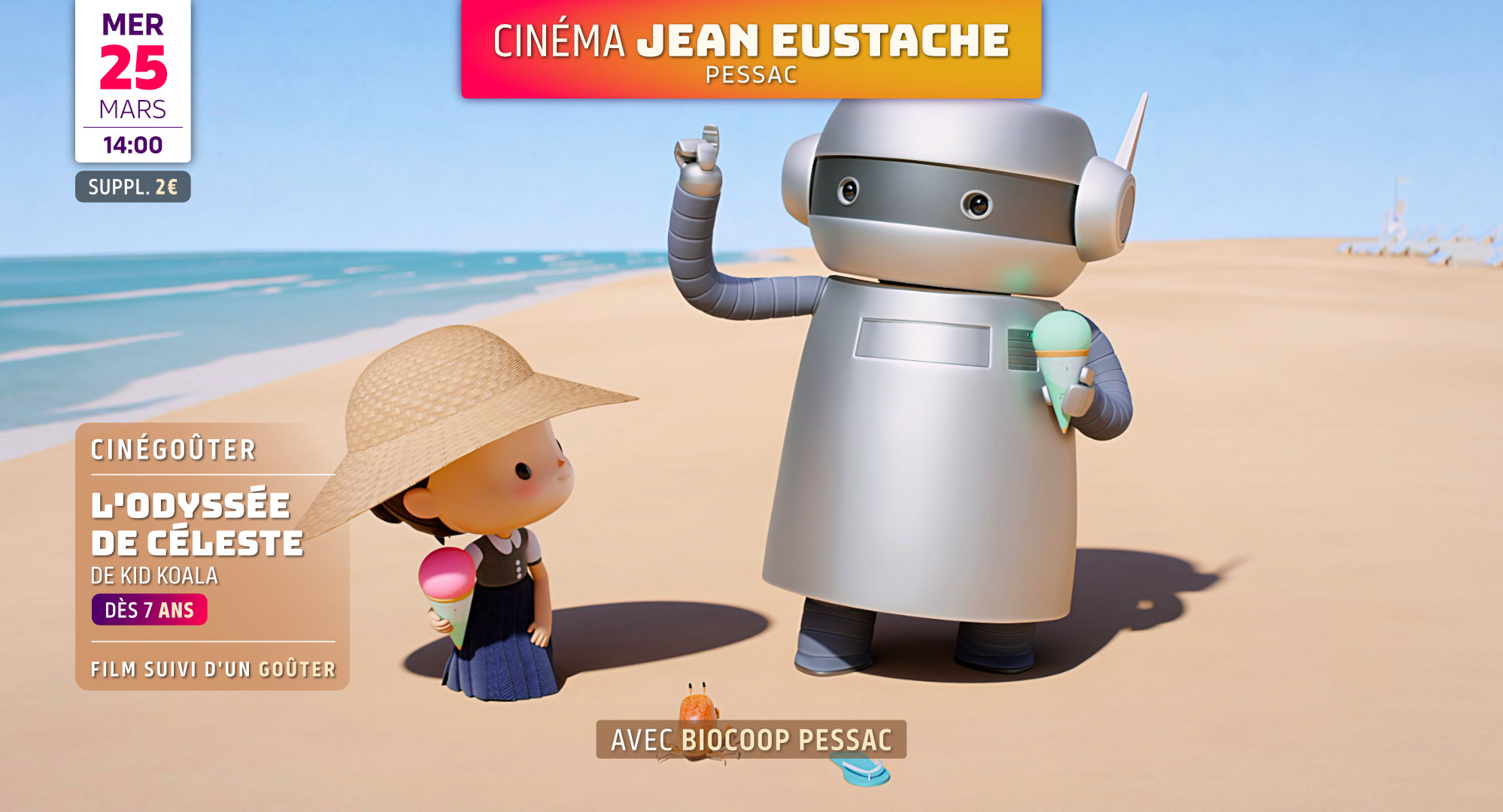 L'ODYSSÉE DE CÉLESTE - Film d'animation de Kid Koala Québec · 2025 · 1h26 Film suivi d'un goûter avec Biocoop Pessac. Tarifs habituels, avec un supplément de 2€.