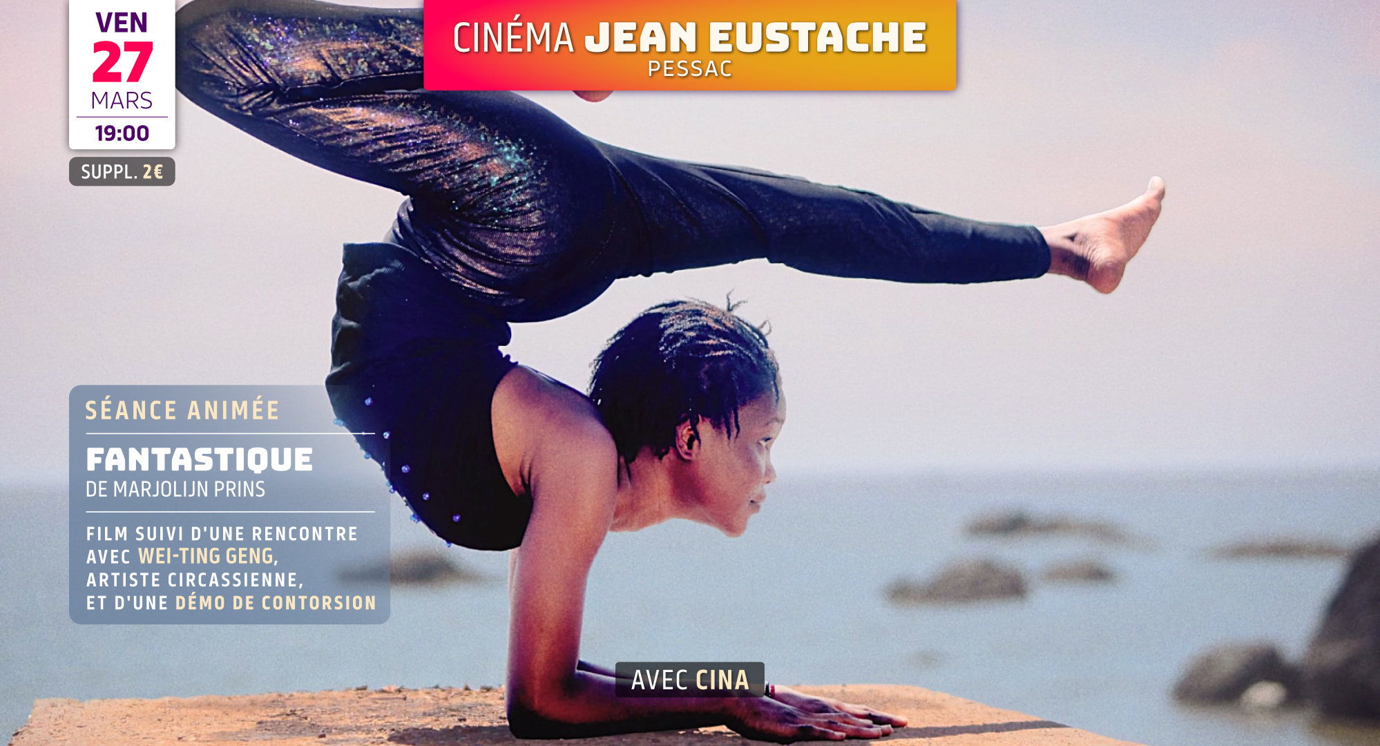 FANTASTIQUE - Film documentaire de Marjolijn Prins France, Belgique, Pays-Bas · 2025 · 1h11 · VF Film suivi d’une rencontre avec Wei-Ting Deng, artiste circassienne, et d’une démonstration de contorsion. En partenariat avec CINA. Tarifs habituels, avec un supplément de 2€. |