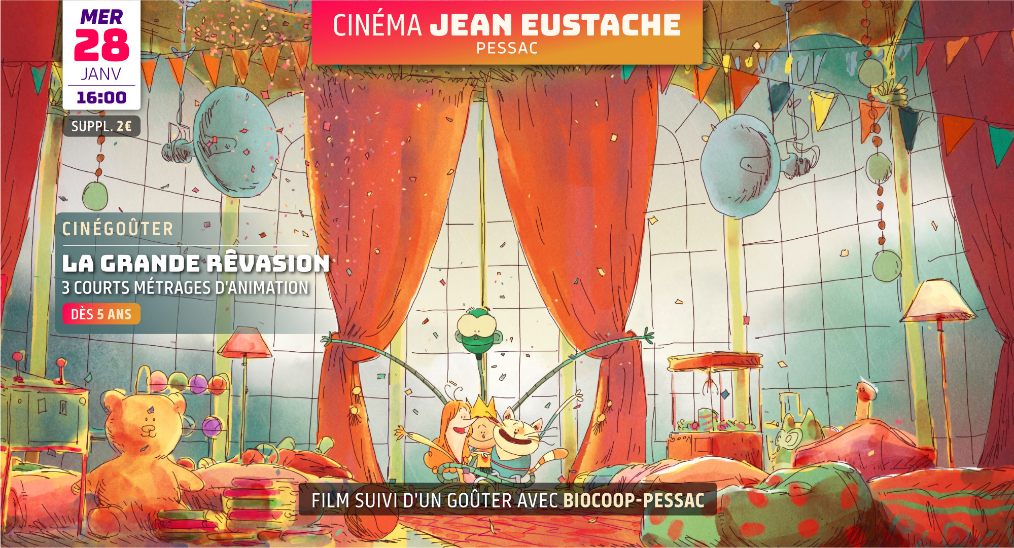 LA GRANDE RÊVASION - Programme de 3 courts métrages d'animation France, Belgique · 2023-2025 · 45min Film suivi d’un goûter préparé par Biocoop Pessac. Sans inscription. Tarif unique 8,00 €. |