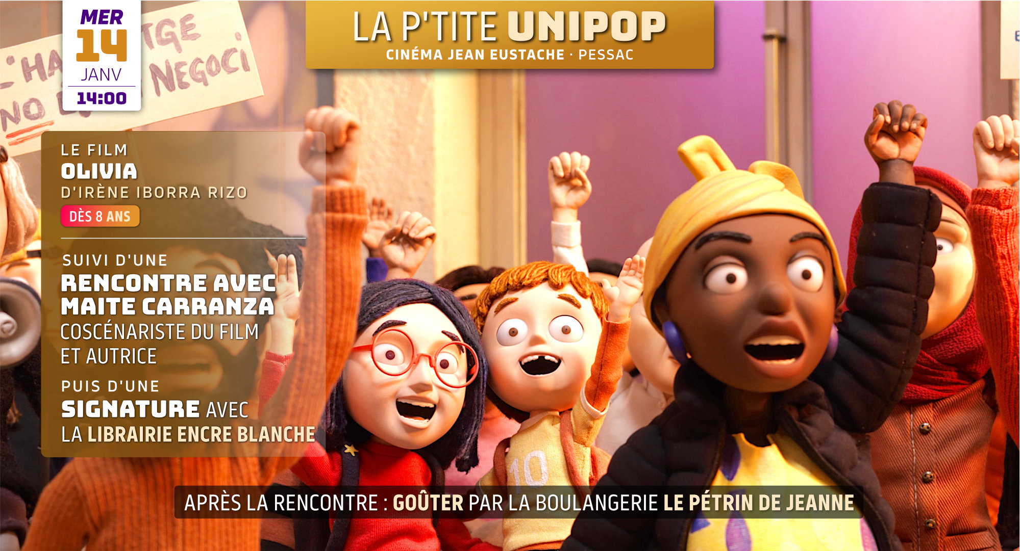 OLIVIA - Film d'animation de Irene Iborra Rizo. International · 2026 · 1h11 D’après le roman La Vie est un film de Maite Carranza. LA RENCONTRE : Rencontre Maite Carranza, coscénariste du film et autrice du livre La Vie est un film. Goûter dans le hall du cinéma avec la boulangerie Le Pétrin de Jeanne […]