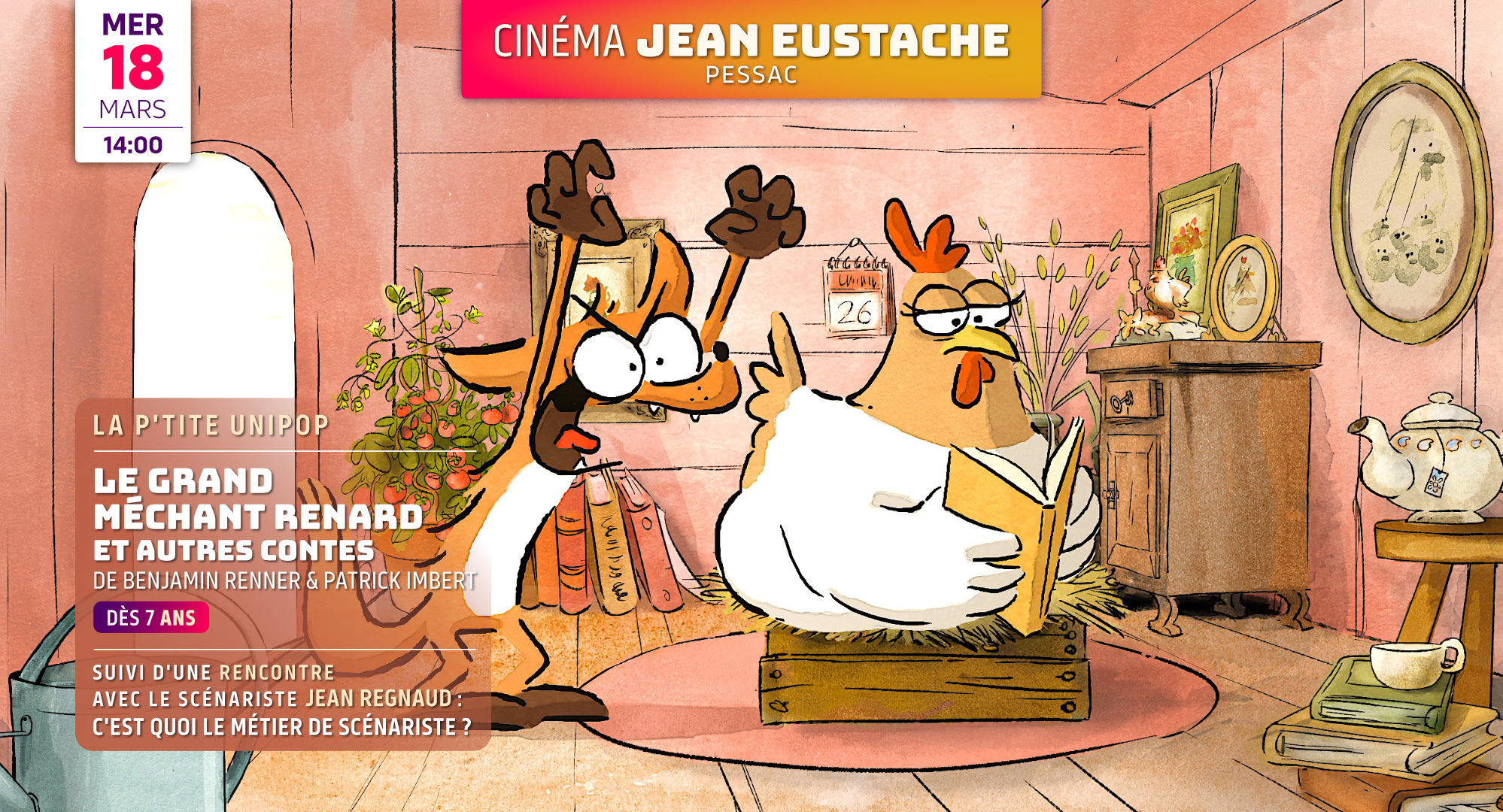 LE GRAND MÉCHANT RENARD ET AUTRES CONTES - Programme de 3 films d'animation de Benjamin Renner et Patrick Imbert. France · 2016 · 1h19 Avec les voix de Céline Ronte, Boris Rehlinger, Guillaume Imbert... D’après les albums de Benjamin Renner. LA RENCONTRE : C'est quoi le métier de scénariste ? par Jean Regnaud. Goûter dans […]