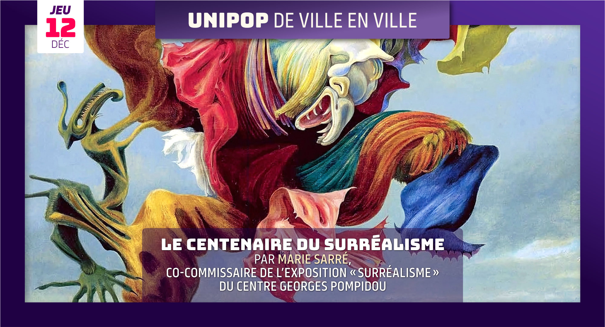 16h LA 1ère SÉANCE : UN CHIEN ANDALOU (1927, 17min) de Luis Bunuel suivi de L'ÂGE D'OR de Luis Bunuel (1930, 1h00)18h30 LA CONFÉRENCE : Le centenaire du surréalisme, par Marie Sarré20h30 LA 2ème SÉANCE : LE CHARME DISCRET DE LA BOURGEOISIE de Luis BunuelTarif des films : 6.50€ pour les inscrits (et Pass Unipop […]