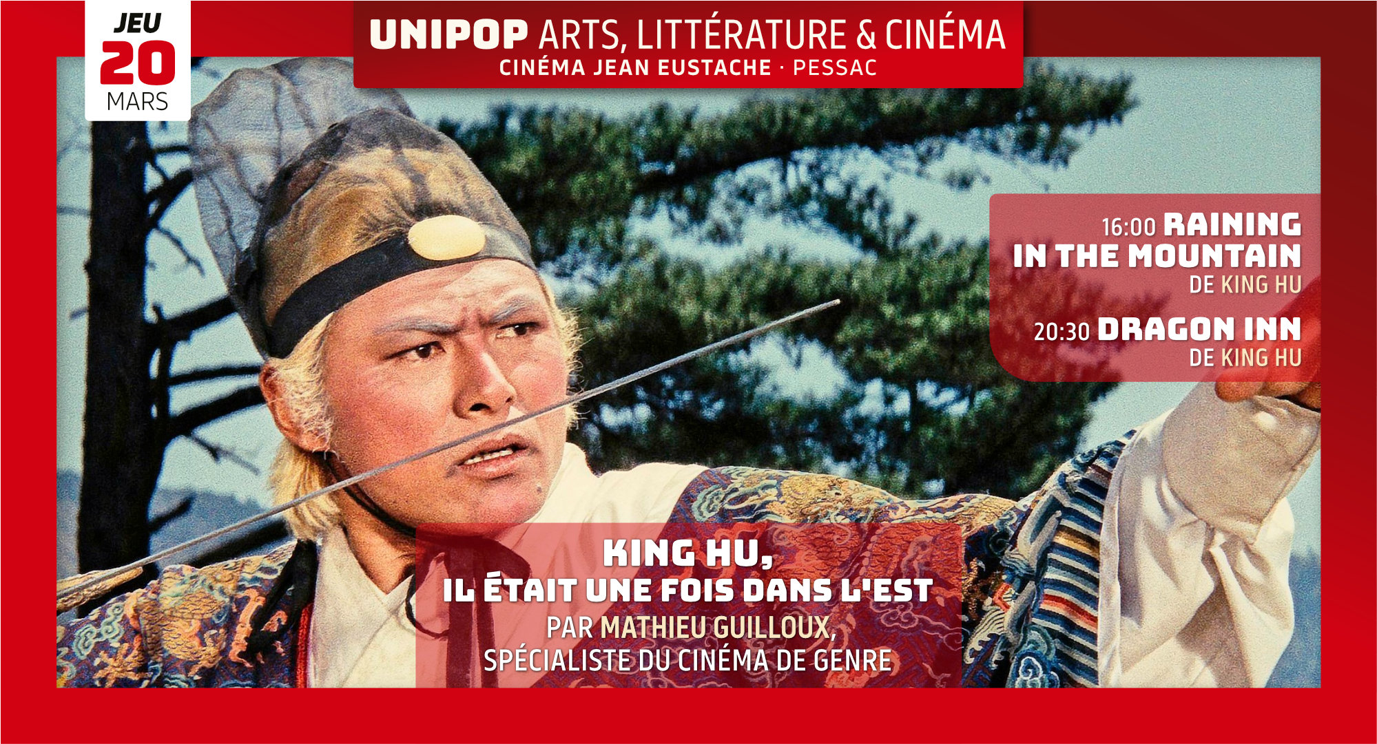 16h LE 1er FILM : RAINING IN THE MOUTAIN de King Hu (1979, 2h)18h30 LA CONFÉRENCE : King Hu, il était une fois dans l'Est, par Mathieu Guilloux20h30 LE 2ème FILM : DRAGON INN de King Hu (1967, 1h51)Tarif des films : 6.50€ pour les inscrits (et Pass Unipop à 10€ pour 2 films), sinon tarifs […]