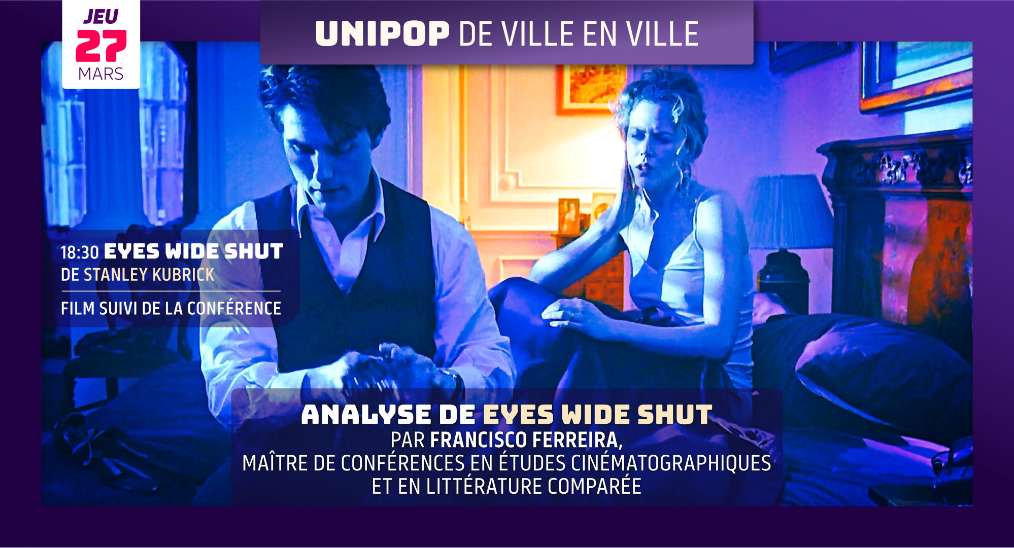18h30 LE FILM : EYES WIDE SHUT de Stanley Kubrick (1999, 2h39)21h30 L'ANALYSE par Francisco FerreiraTarif du film : 6.50€ pour les inscrits, sinon tarifs habituels.