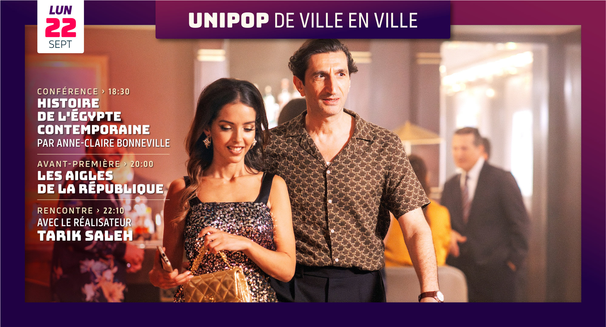 18h30-19h30 : LA CONFÉRENCE : Histoire de l'Égypte contemporaine par Anne-Claire de Bonneville 20h00 : Avant-première LES AIGLES DE LA RÉPUBLIQUE de Tarik Saleh (2h09, VOSTFR) Tarif du film : 6.50€ pour les inscrits, sinon tarifs habituels. |