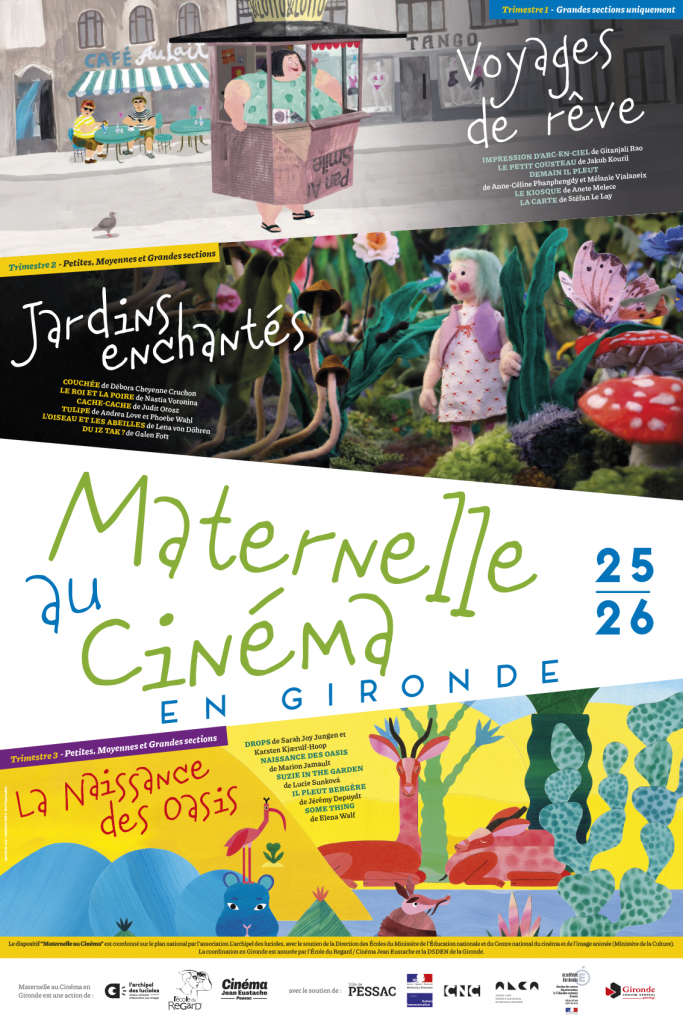- Depuis 2016, la coordination cinéma du dispositif est confiée au Cinéma Jean Eustache pour le département de la Gironde. Elle est assurée en partenariat avec les services départementaux de l’Éducation Nationale.